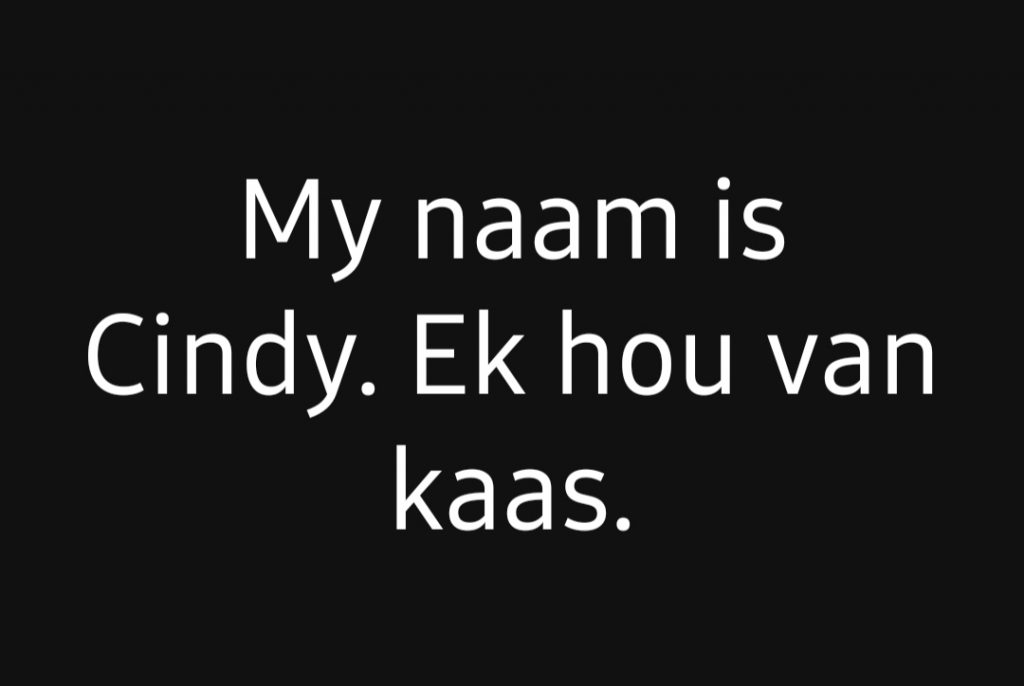 My naam is Irrene’. Ek hou van kaas. Ek hou nie van geraas nie.