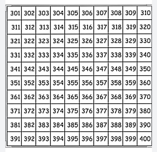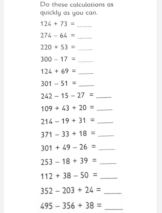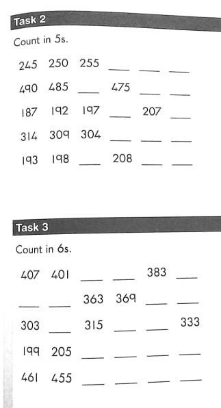 Counting: backwards from 400-301 in 3’s and 4’s